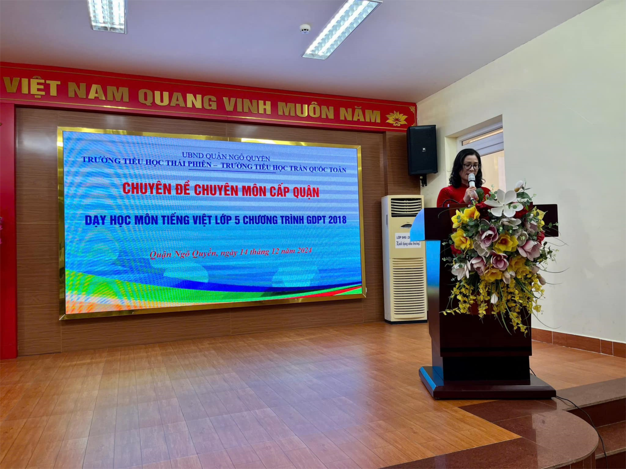 Sáng ngày 14/12/2024 trường Tiểu học Thái Phiên và Tiểu học Trần Quốc Toản tổ chức lên lớp chuyên đề với nội dung "Dạy học môn Tiếng Việt lớp 5 chương trình GDPT 2018." Đến dự chuyên đề có đồng chí Nguyễn Thị Hải Hạnh - Phó trưởng phòng, Phòng GD&ĐT; đ/c Phạm Thuỳ Dịu- Chuyên viên Phòng GD&ĐT; các thầy cô giáo là Phó hiệu trưởng, giáo viên khối 5 các trường tiểu học thuộc quận Ngô Quyền.