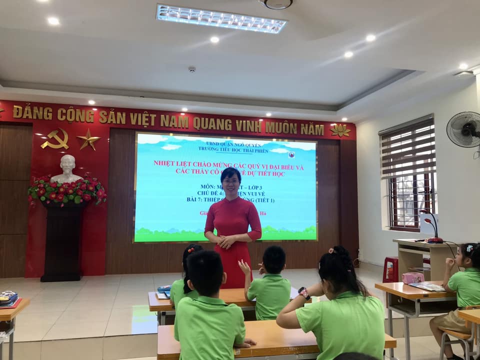 Thực hiện Kế hoạch sinh hoạt chuyên môn năm học 2022-2023, sáng ngày 25/11/2022 trường Tiểu học Thái Phiên và Nguyễn Du lên lớp tiết Mĩ thuật lớp 3 do cô giáo Hoàng Thị Thu Hà và Nguyễn Thị Hồng Phượng thể hiện. Cả hai tiết dạy đã thực hiện thành công đổi mới phương pháp phát triển được năng lực học tập của học sinh. Qua buổi sinh hoạt chuyên môn giúp các thầy cô dạy môn Mĩ thuật được chia sẻ kinh nghiệm, bồi dưỡng năng lực cũng như các kĩ năng lên lớp đạt mục tiêu chương trình GDPT 2018 đối với năm đầu tiên thực hiện thay sách lớp 3.