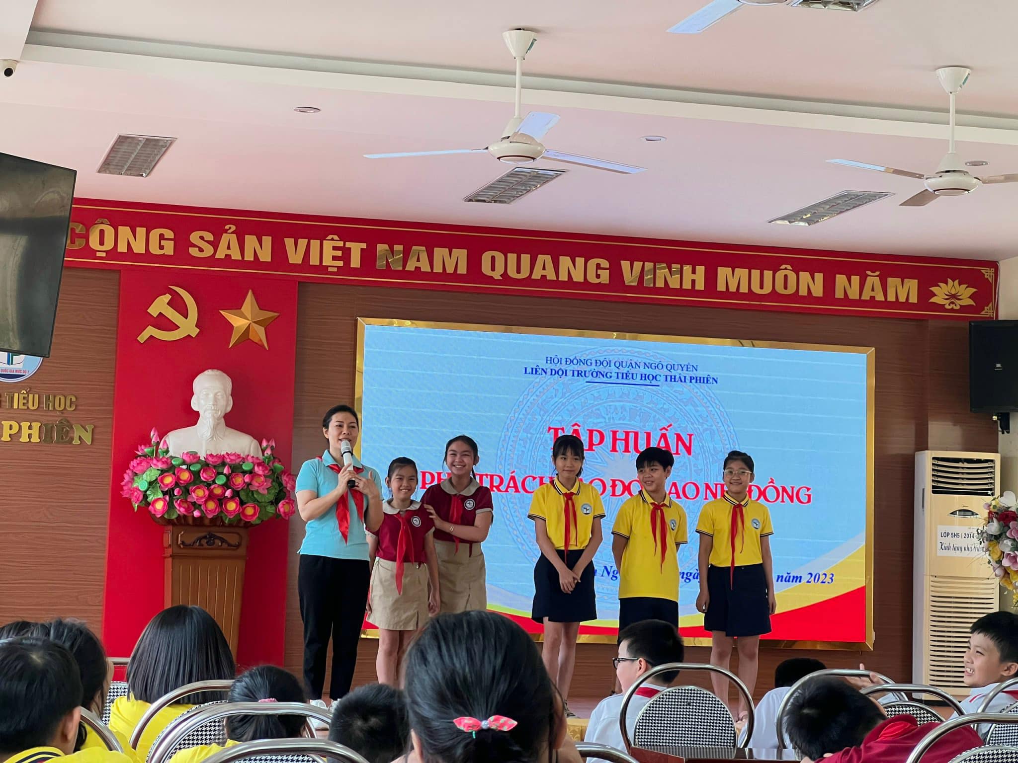 Thực hiện kế hoạch Công tác Đội và phong trào thiếu nhi năm học 2023 - 2024. Với mục đích ổn định nề nếp và học tập của Liên đội ngay từ đầu năm, đồng thời chọn lựa và hướng dẫn các kĩ năng cho đội ngũ cán bộ Đội để làm tốt công tác tự quản của Đội, theo dõi xếp loại thi đua hàng ngày, hàng tuần, đợt thi đua và cả năm học. Chiều ngày 16/9/2023, Liên đội đã tổ chức tập huấn, phân công nhiệm vụ, hướng dẫn đội sao đỏ kiểm tra, theo dõi thi đua nền nếp tại Liên đội và tập huấn đội ngũ phụ trách Sao nhi đồng cho 75 Đội viên.