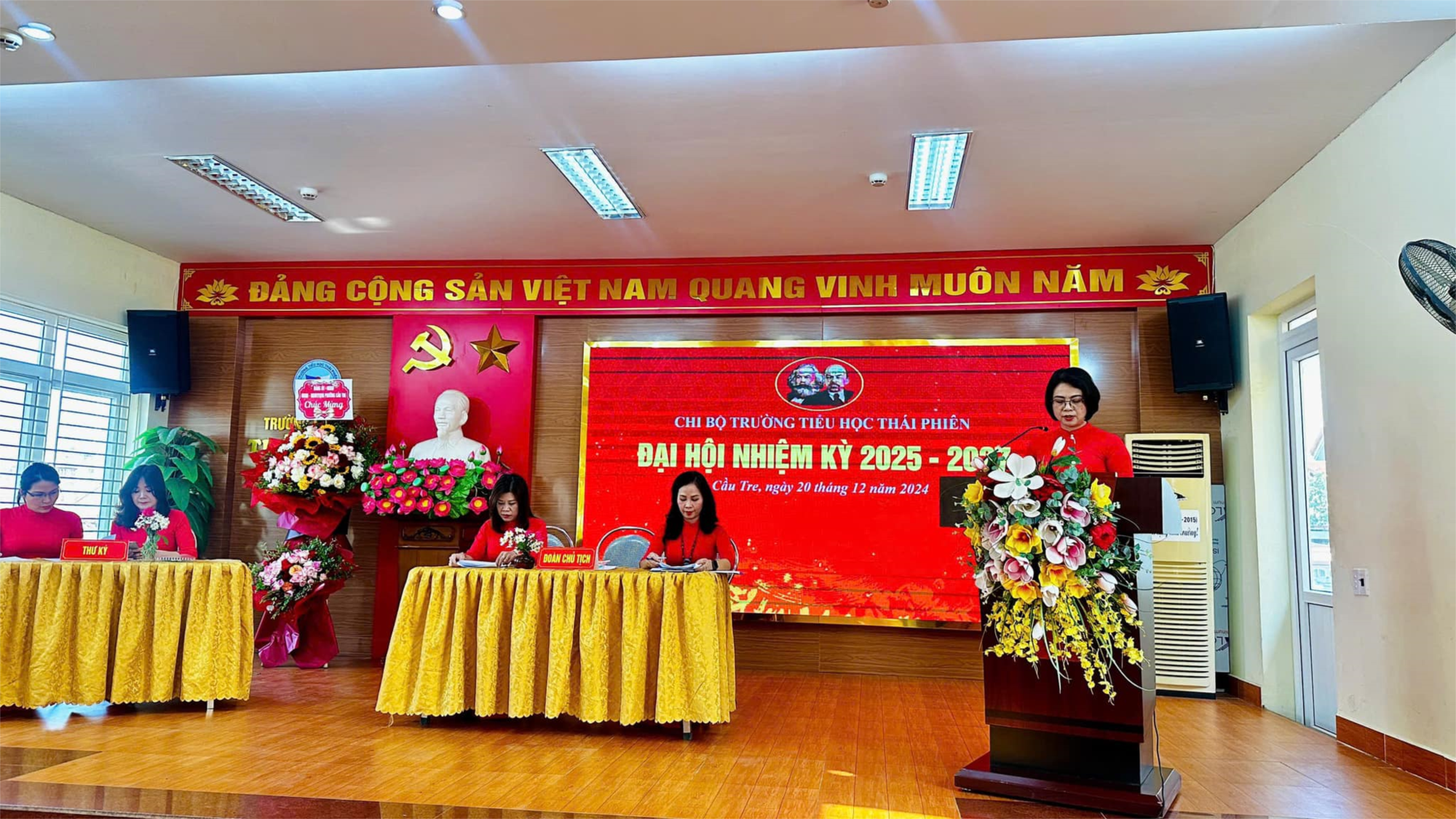 Thực hiện Chỉ thị số 35, ngày 14/6/2024 của Bộ Chính trị “về đại hội đảng bộ các cấp tiến tới Đại hội đại biểu toàn quốc lần thứ 14 của Đảng”; Kế hoạch số 379, ngày 17/7/2024 của Ban Chấp hành Đảng bộ thành phố; Thông tri số 10, ngày 22/7/2024 của Ban Thường vụ Thành ủy; Kế hoạch số 223, ngày 29/7/2024 của Ban Chấp hành Đảng bộ Quận Ngô Quyền và Kế hoạch số 108, ngày 01/8/2024 của Đảng uỷ phường Cầu Tre về tổ chức Đại hội các chi bộ tiến tới Đại hội đại biểu Đảng bộ phường Cầu Tre lần thứ 13, nhiệm kỳ 2025-2030; Được sự đồng ý của Ban Thường vụ Đảng uỷ, hôm nay Chi bộ trường TH Thái Phiên tiến hành Đại hội chi bộ nhiệm kì 2025-2027, nhằm đánh giá kết quả lãnh đạo, chỉ đạo của chi bộ nhiệm kỳ qua, đề ra phương hướng nhiệm vụ nhiệm kỳ tới; tham gia đóng góp ý kiến vào Dự thảo báo cáo chính trị của Đảng bộ phường và dự thảo báo cáo chính trị lần thứ 14 của Đảng; bầu ra Cấp uỷ chi bộ nhiệm kỳ 2025-2027 và đại biểu đi dự Đại hội Đảng bộ phường lần thứ 13.