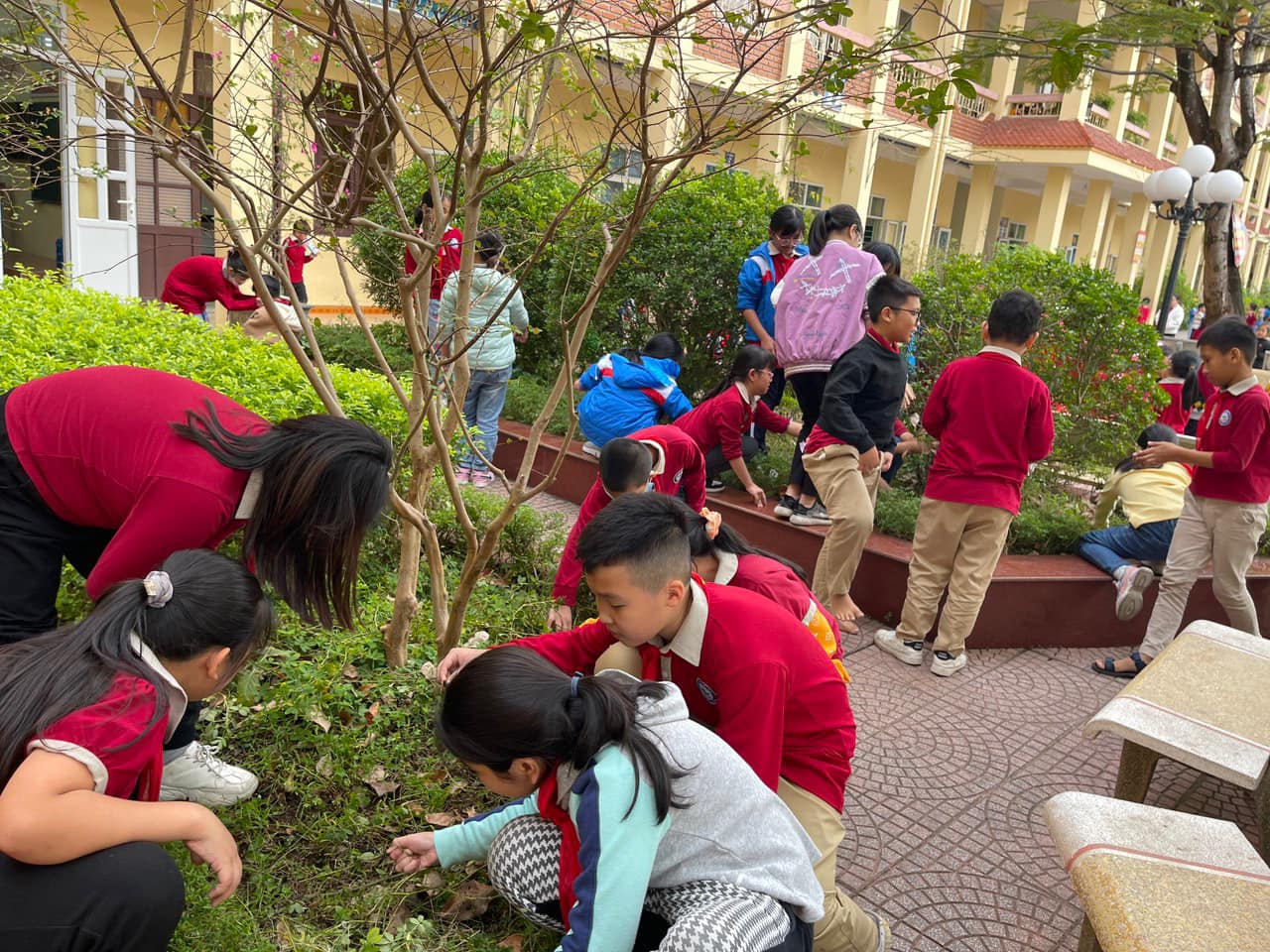 Hoạt động dọn vệ sinh trường, lớp - Chăm sóc bồn hoa cây xanh - Phân loại rác thải theo quy định là hoạt động định kì diễn ra vào thứ 6 hàng tuần đã được nhà trường triển khai đến 100% cán bộ giáo viên và học sinh toàn trường ngay từ đầu năm học.