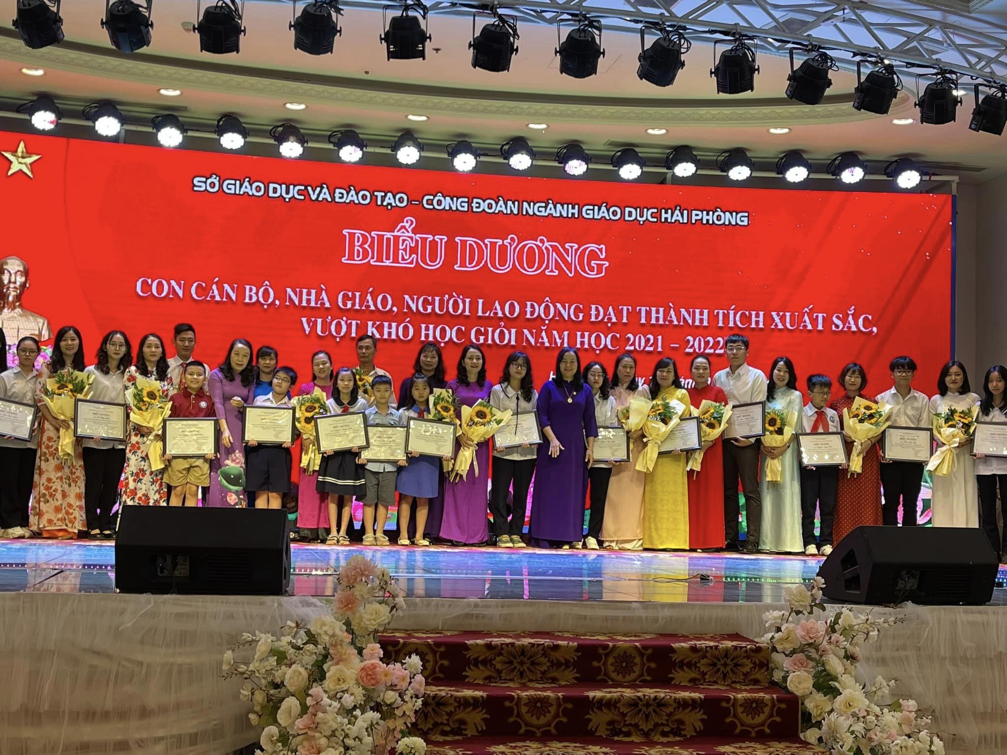 Chúc mừng cháu Kiều Hải Phong con thầy giáo Kiều Hải Châu đạt giải Nhất cuộc thi Cây đàn tuổi thơ cấp Thành phố; cháu Nguyễn Khánh Linh con cô giáo Phạm Thị Thuỷ đạt giải Nhì môn Sinh học cấp thành phố đã vinh dự được Công đoàn ngành Giáo dục Hải Phòng biểu dương tại Hội nghị Biểu dương con cán bộ nhà giáo, người lao động đạt thành tích xuất sắc năm học 2021-2022.