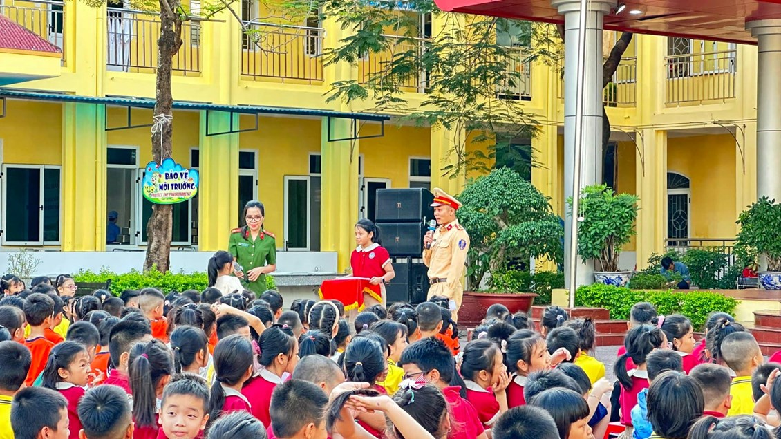 Trong buổi tuyên truyền nhà trường được vinh dự đón đồng chí Nguyễn Quang Huy - Đại úy đội giao thông trật tự Công an Quận Ngô Quyền về tuyên truyền với nhiều nội dung phong phú, thu hút giáo viên và học sinh toàn Liên đội tham gia.
