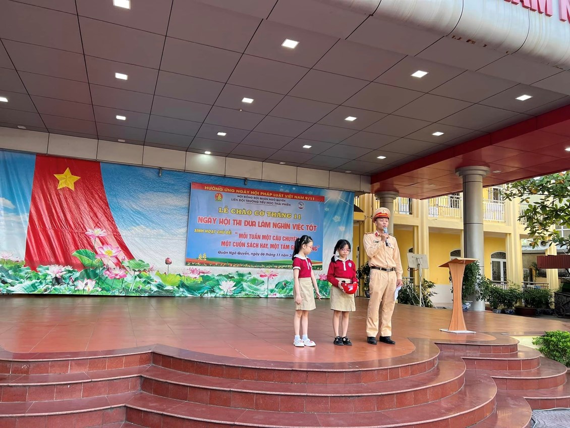Thực hiện Chương trình công tác Đội và phong trào thiếu nhi năm học 2023 - 2024; Hưởng ứng ngày pháp luật nước CHXHCN Việt Nam 9/11; Hôm nay, Liên đội trường Tiểu học Thái Phiên tổ chức Truyền thông Tuyên truyền về ATGT - Phòng chống TNTT năm 2023 nhằm nâng cao ý thức tuân thủ pháp luật của cán bộ, giáo viên, nhân viên và học sinh trong toàn Liên đội.
