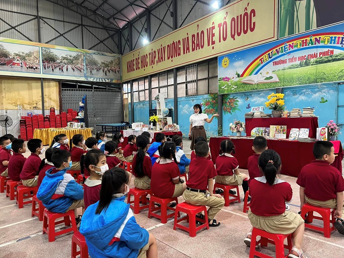 Nhân dịp kỷ niệm 133 năm ngày sinh của Chủ tịch Hồ Chí Minh vĩ đại, Trường Tiểu học Thái Phiên đã tổ chức Ngày hội sách với chủ điểm “Mỗi tuần một câu chuyện đẹp, một cuốn sách hay, một tấm gương sáng”. 05 gian sách truyện thuộc nhiều thể loại được các khối lớp trưng bày và giới thiệu nhưng ấn tượng nhất là gian sách của khối 5 và cuốn sách “Những câu chuyện nhỏ bài học lớn từ Bác Hồ”do tác giả Đoàn Huyền Trang sưu tầm và tuyển chọn. Do nhà xuất bản Dân trí thẩm định và xuất bản năm 2021. Sách được in 2000 bản, với độ dày 227 trang và in trên khổ 13 x 19 cm. Cuốn sách là tập hợp 74 câu chuyện nhỏ về đạo đức, lối sống giản dị, tiết kiệm, những sinh hoạt bình dị thường ngày của Bác, qua đó chúng mình sẽ rút ra được những bài học sâu sắc và càng thêm thấm thía những lời dạy của Người.