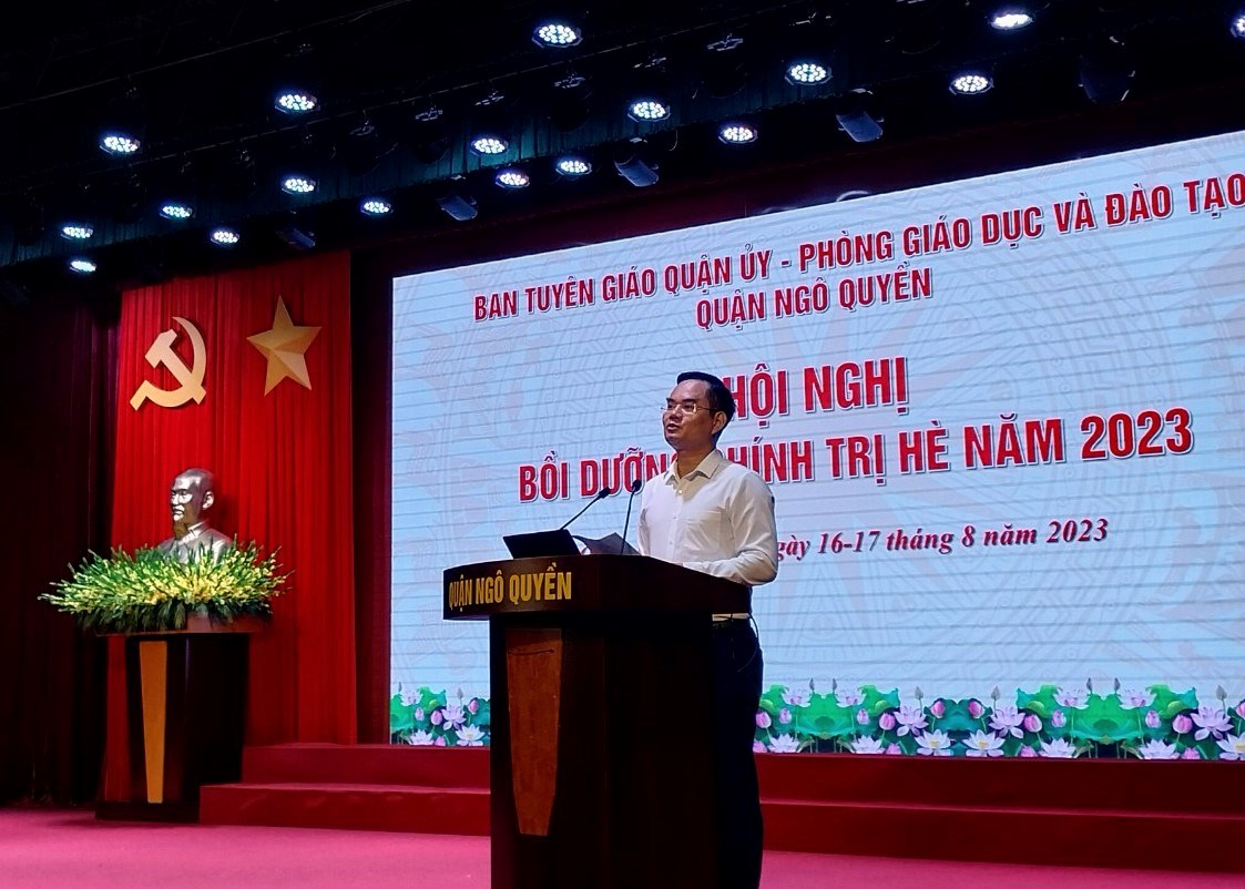 Sáng 16/8, Ban Tuyên giáo Quận ủy phối hợp Phòng Giáo dục và Đào tạo quận Ngô Quyền tổ chức Khai mạc chương trình bồi dưỡng chính trị hè cho đội ngũ cán bộ quản lý, giáo viên các trường học thuộc quận năm 2023.