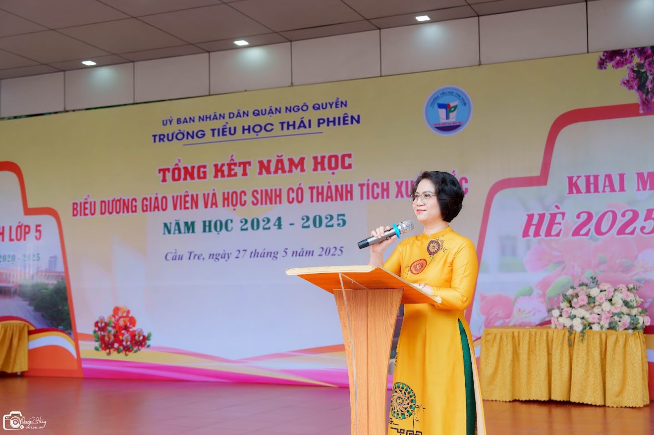 Sáng ngày 27/5/2025, Trường Tiểu học Thái Phiên đã long trọng tổ chức chương trình tổng kết năm học 2024 - 2025 - chia tay học sinh lớp 5 niên khóa 2020 – Khai mạc hè 2025 trong không khí trang trọng, ấm áp và ngập tràn cảm xúc. Trong năm học qua, bằng tinh thần nỗ lực không ngừng nghỉ, thầy và trò nhà trường đã gặt hái được những thành tích xuất sắc với hơn 330 giải học sinh giỏi các cấp, trong đó có nhiều giải quốc tế, quốc gia và thành phố.
