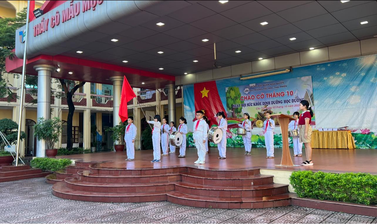 Thực hiện kế hoạch công tác Đội và phong trào thiếu nhi năm học 2022-2023. Hôm nay trường Tiểu học Thái Phiên long trọng tổ chức lễ chào cờ tháng 10 - Ngày hội sức khỏe dinh dưỡng học đường - Biểu dương học sinh xuất sắc và học sinh đạt giải toán FMO.