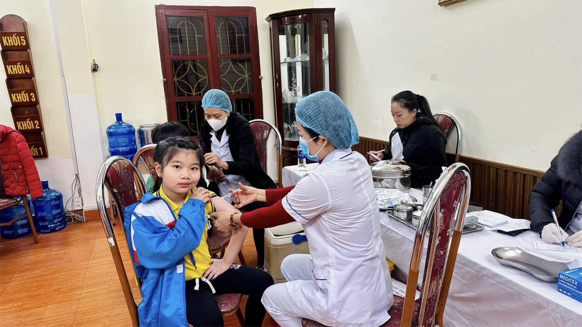 Thực hiện kế hoạch số 294/KH- UBND quận tiêm vắc xin Uốn ván - Bạch hầu giảm liều (td) cho trẻ từ 7 tuổi trở lên. Trường Tiểu học Thái Phiên phối kết hợp với trạm y tế phường Cầu Tre tiêm cho học sinh lớp 2 đang học tại trường.