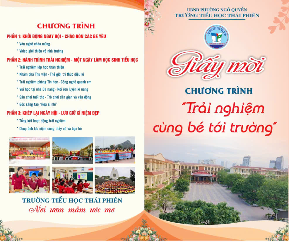 Trường Tiểu học Thái Phiên trân trọng kính mời quý phụ huynh và các bé mẫu giáo 5 tuổi tham dự chương trình