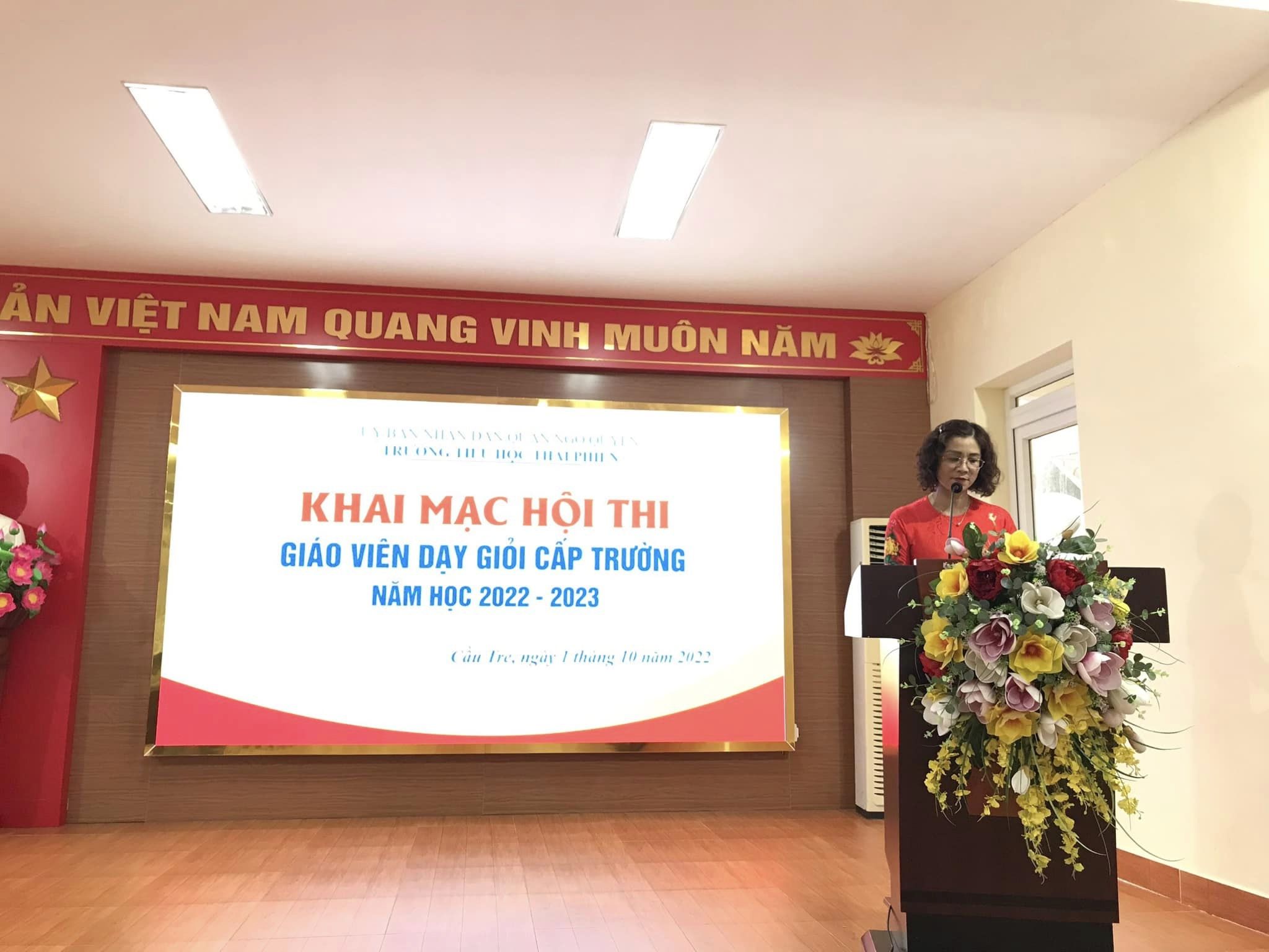 Thực hiện kế hoạch về hội thi giáo viên dạy giỏi các cấp năm học 2022 - 2023, triển khai phong trào thi đua dạy tốt – học tốt, chào mừng kỷ niệm ngày phụ nữ Việt Nam 20/10. Sáng ngày 1/10/2022, trường Tiểu học Thái Phiên tổ chức Hội thi Giáo viên giỏi cấp trường năm học 2022-2023 . Hội thi là dịp để giáo viên thể hiện năng lực, học tập, trao đổi kinh nghiệm về giảng dạy; kĩ năng xử lí tình huống, bao quát và tổ chức lớp học; đổi mới hình thức tổ chức dạy học; đổi mới phương pháp giảng dạy; kĩ năng quan sát và hỗ trợ học sinh... phát huy tính tự học của học sinh; khai thác sử dụng sáng tạo và hiệu quả các phương tiện, đồ dùng dạy học.