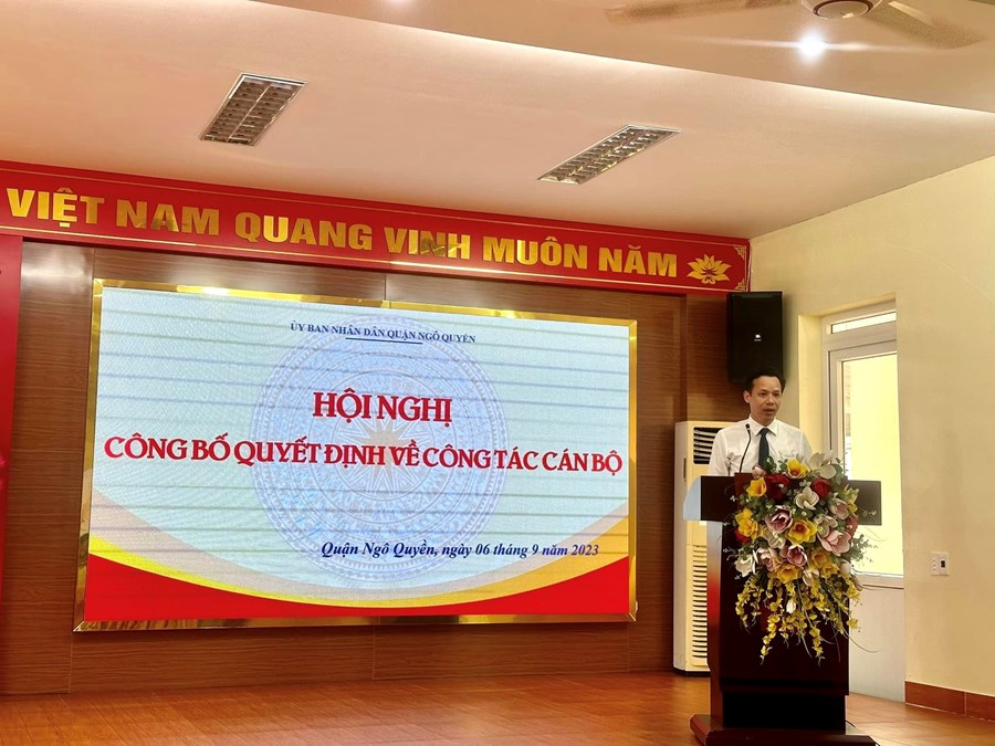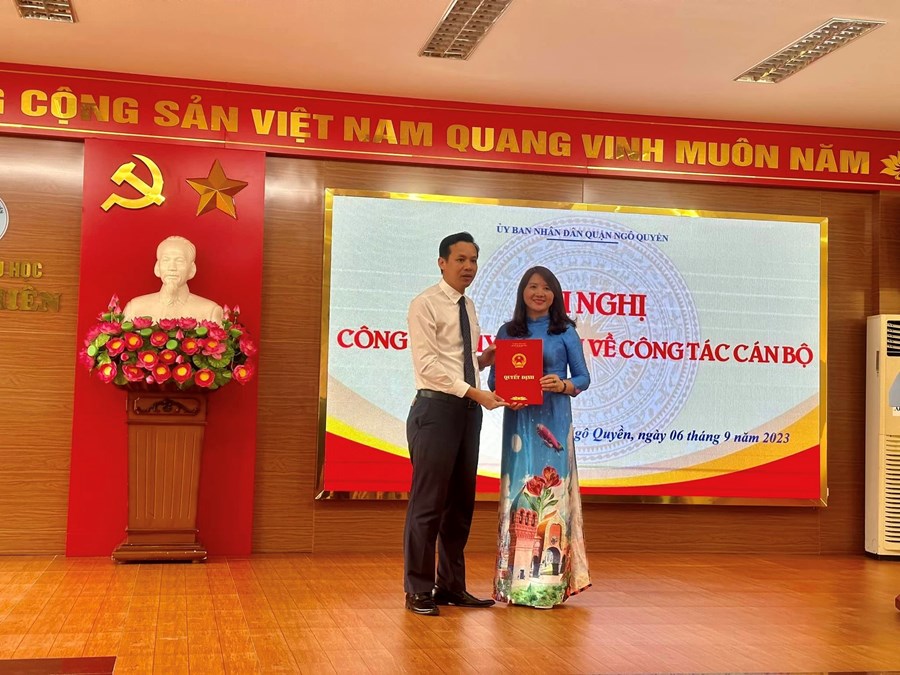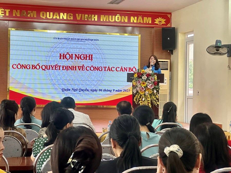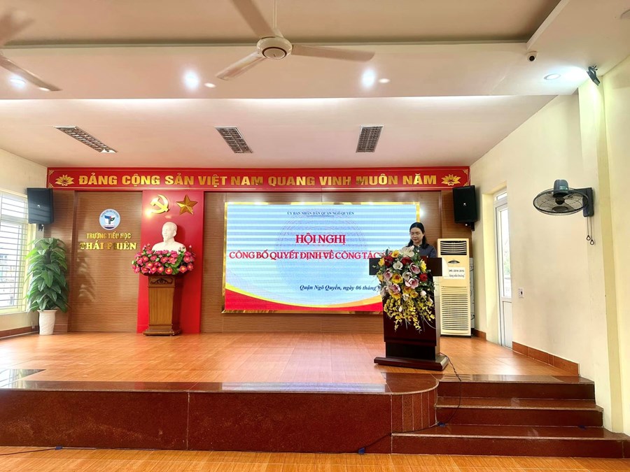 Thực hiện sự điều động và bổ nhiệm viên chức quản lý đơn vị sự nghiệp giáo dục công lập. Ngày 06/9 tại trường Tiểu học Thái Phiên - UBND quận Ngô Quyền công bố quyết định.